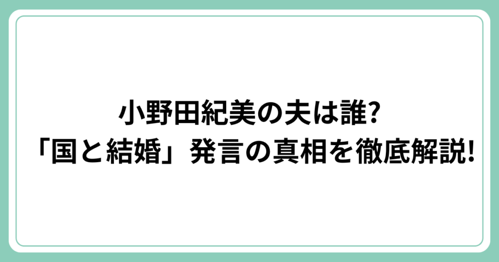 小野田紀美の夫は誰?「国と結婚」発言の真相を徹底解説!