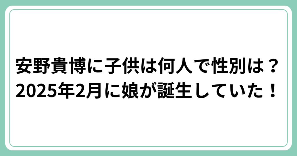 安野貴博に子供は何人で性別は?2025年2月に娘が誕生していた!
