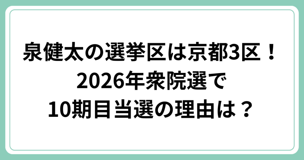 泉健太の選挙区は京都3区!2026年衆院選で10期目当選の理由は?