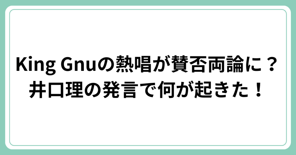 King Gnuの熱唱が賛否両論に?井口理の発言で何が起きた!