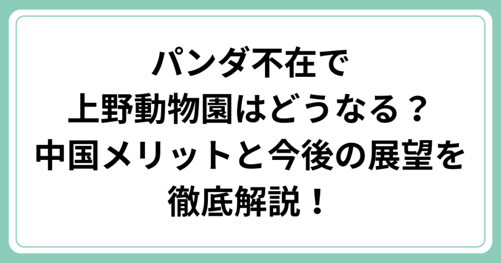 パンダ不在で上野動物園はどうなる?中国メリットと今後の展望を徹底解説!