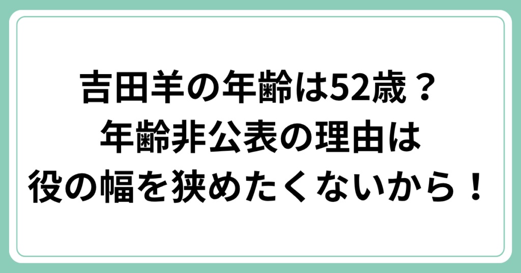 女優の吉田羊さんといえば、数々のドラマや映画で印象的な演技を見せてくれる実力派として知られていますよね。 そんな吉田羊さんですが、実は年齢を公表していないことでも有名です。 「吉田羊さんって何歳なの?」「なぜ年齢を公表しないの?」と気にな... -