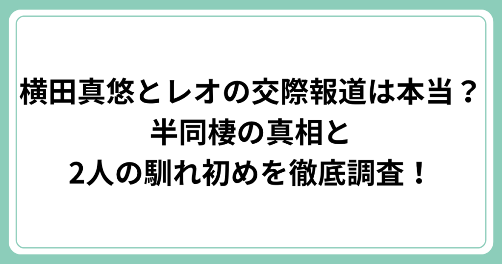 女優の横田真悠さんと、人気グループBE:FIRSTのLEOさんの交際報道が話題になっています。 2025年12月に文春オンラインやFRIDAYが相次いで報じたこのニュースは、ファンの間で大きな反響を呼びました。 「本当に交際しているの?」「2人の馴れ初めは?」「... -