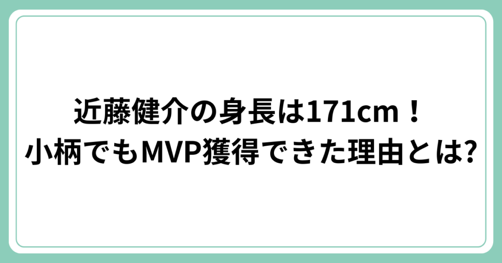 近藤健介選手の身長について気になっている方も多いのではないでしょうか? 福岡ソフトバンクホークスの主力打者として活躍し、2024年にはシーズンMVPにも輝いた近藤選手ですが、実は身長171cmとプロ野球選手の中では小柄な部類に入ります。 それでも首位... -