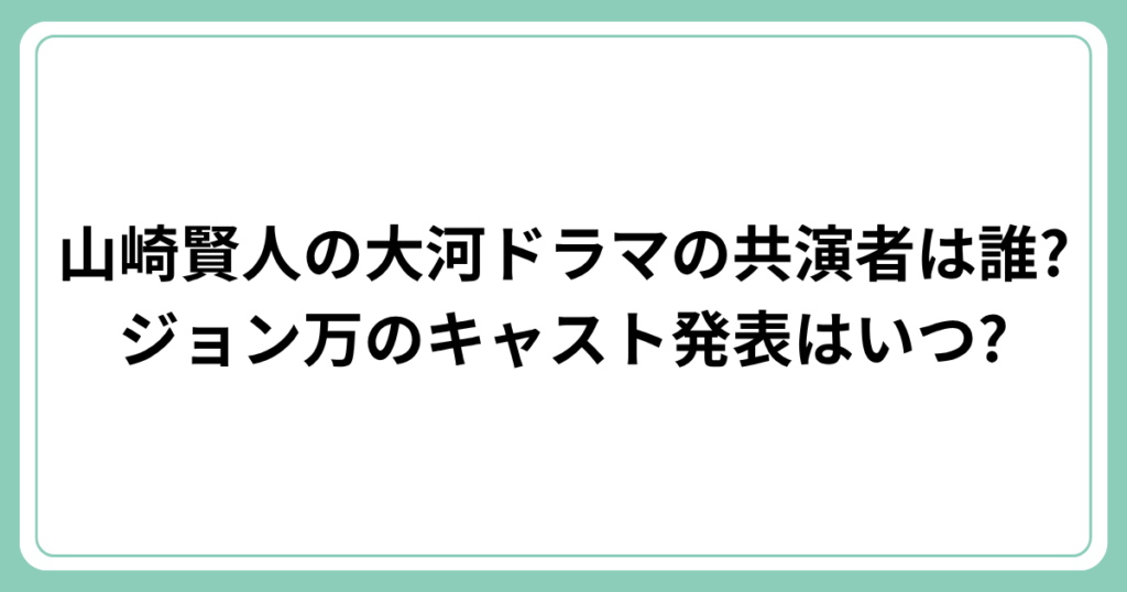 2028年1月から放送予定のNHK大河ドラマ『ジョン万』で主演を務めることが発表された山崎賢人さん。 大河ドラマ初主演ということで、大きな注目を集めています。 しかし、気になるのは共演者の情報ですよね。 この記事では、山崎賢人さんの大河ドラマ共演者... -