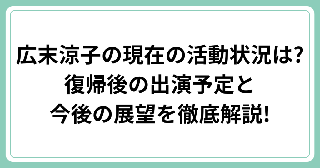 女優の広末涼子さんが2026年4月に活動再開を発表し、大きな話題となっています。 2025年5月に病気療養のため活動休止を発表してから約1年、ファンの間では「広末涼子さんは今どうしているの?」「復帰後の出演予定は?」といった声が多く聞かれます。 この記... -