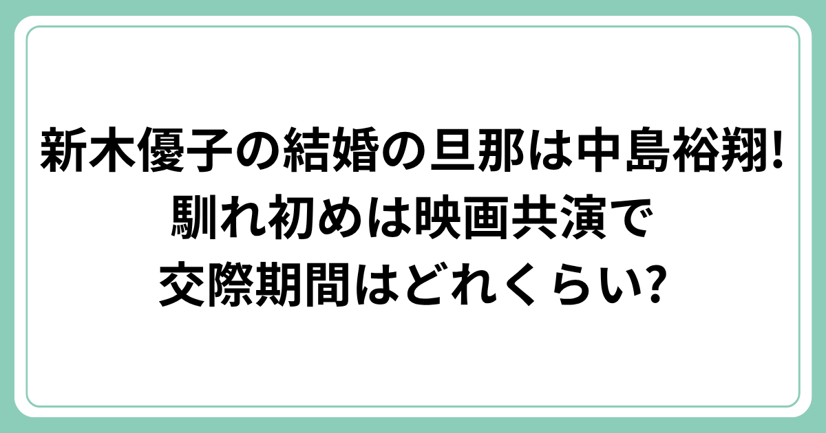 そこで今回は、新木優子さんの結婚相手である旦那さんについて、馴れ初めや交際期間などを詳しく調べてみました!