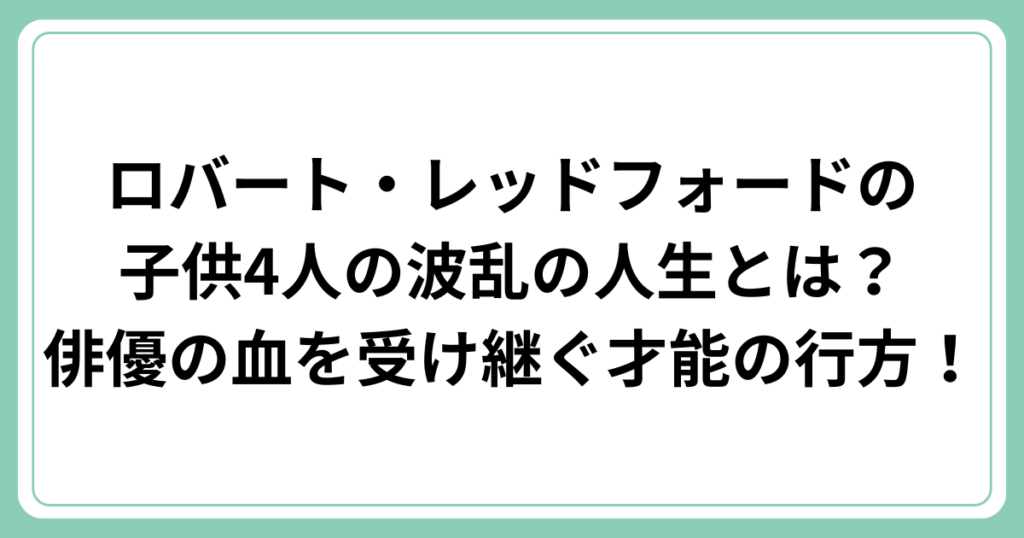 ハリウッドの伝説的俳優であり監督でもあるロバート・レッドフォードさん。 その輝かしいキャリアの影で、彼の4人の子供たちはどのような人生を歩んできたのでしょうか? 今回は、レッドフォード家の子供たちの波乱に富んだ人生と、彼らが受け継いだ才能に...