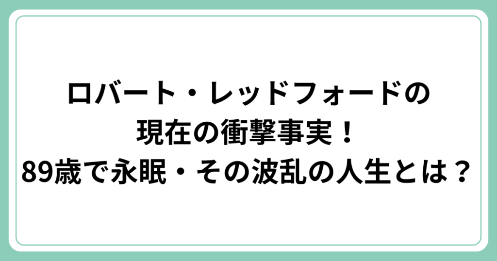 ハリウッドの伝説的俳優であり、監督、そして環境活動家として知られるロバート・レッドフォードさん。 その彼が2025年9月16日、89歳で永眠したという衝撃的なニュースが世界中を駆け巡りました。 レッドフォードさんは長年にわたり、映画界に多大な影響を... -