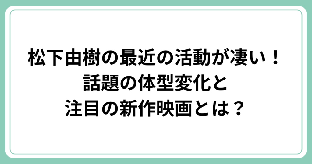 松下由樹の最近の活動が凄い!話題の体型変化と注目の新作映画とは?