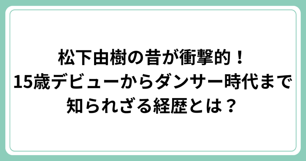 松下由樹の昔が衝撃的!15歳デビューからダンサー時代まで知られざる経歴とは?