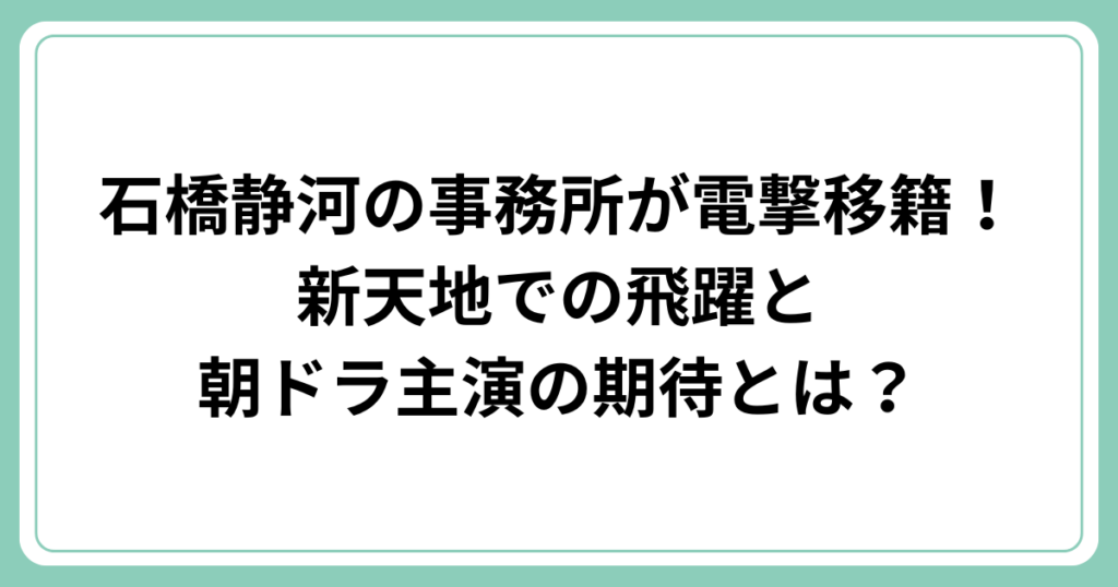 今回は、若手実力派女優として注目を集める石橋静河さんの最新ニュースについてお伝えします。 石橋さんが所属事務所を電撃移籍したという衝撃の発表がありました。 この記事では、移籍の詳細や新しい事務所、そして今後の活躍について詳しくご紹介します...