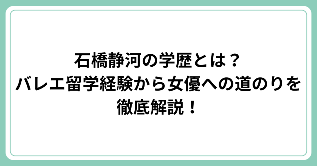 石橋静河の学歴とは?バレエ留学経験から女優への道のりを徹底解説!