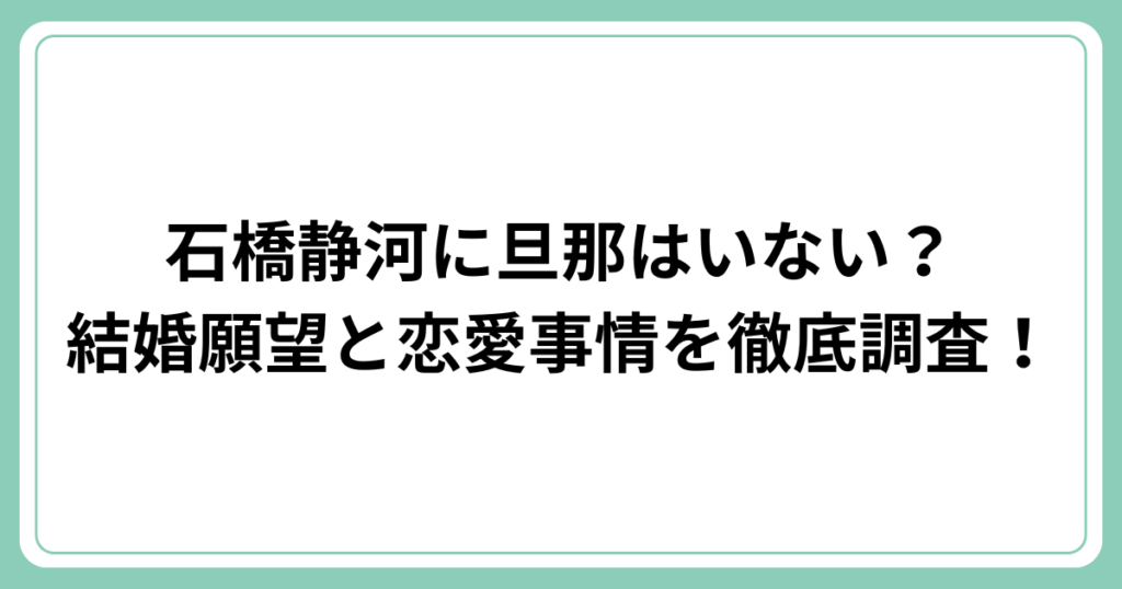 女優として活躍中の石橋静河さん。 芸能一家に生まれ、その才能と美貌で注目を集めています。 しかし、プライベートな部分はあまり知られていないのが現状です。 今回は、石橋静河さんの結婚状況や恋愛事情について、最新情報をもとに徹底的に調査しました... -