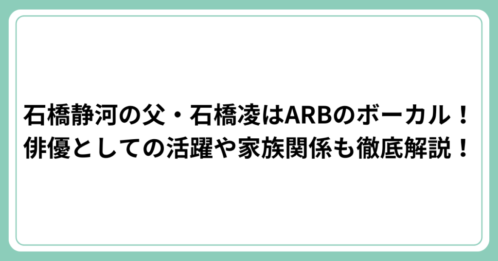 石橋静河さんといえば、若手実力派女優として注目を集めています。 そんな彼女の父親が、伝説のロックバンドARBのボーカリストで俳優の石橋凌さんだということをご存知でしょうか? 今回は、石橋静河さんの父親である石橋凌さんについて、その経歴や家族関... -
