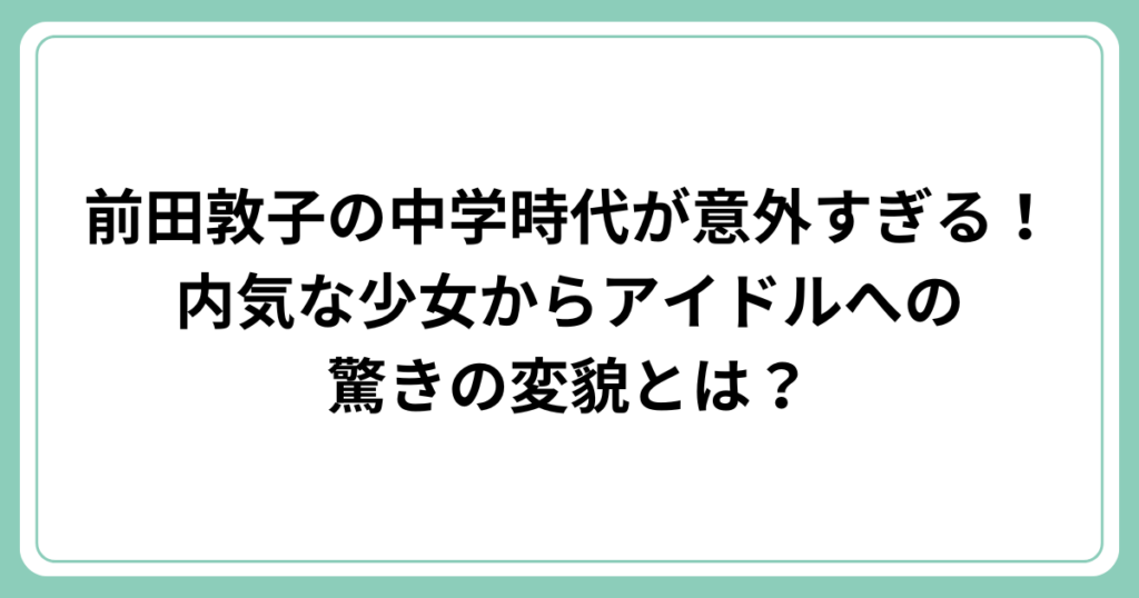 前田敦子の中学時代が意外すぎる!内気な少女からアイドルへの驚きの変貌とは?