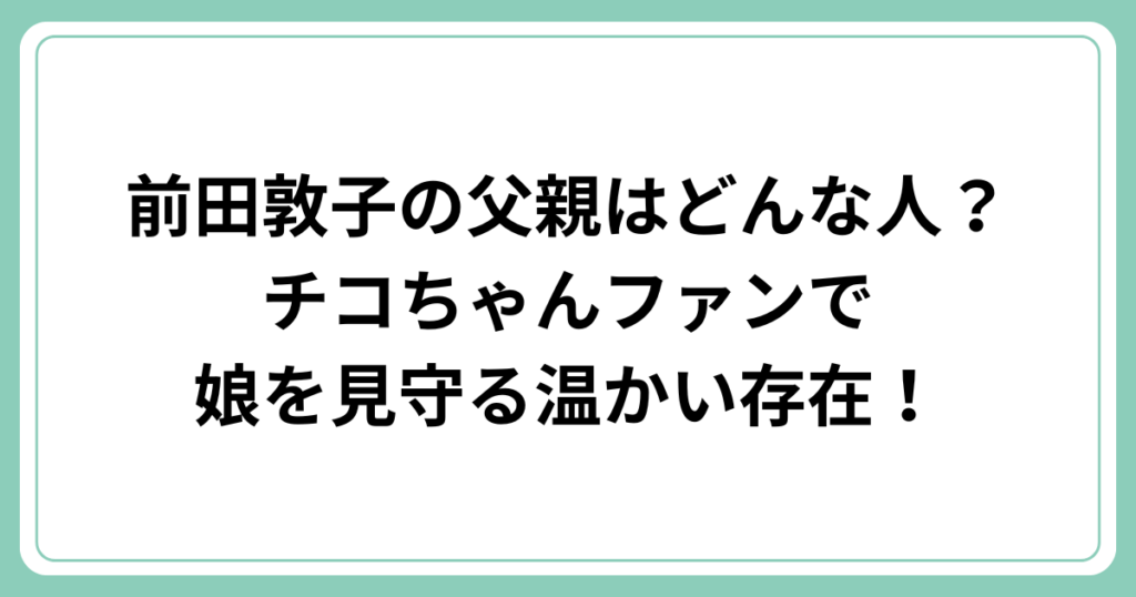 前田敦子の父親はどんな人?チコちゃんファンで娘を見守る温かい存在!