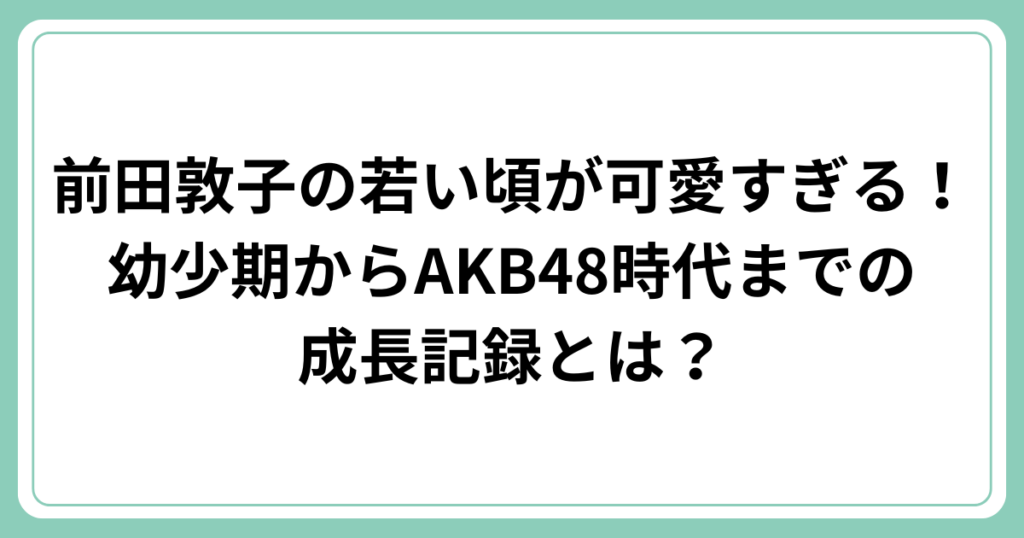 前田敦子さんといえば、AKB48の元メンバーで、現在は女優として活躍する人気タレントです。 しかし、彼女の若い頃はどのような姿だったのでしょうか? 今回は、前田敦子さんの幼少期からAKB48時代までの成長記録を紹介します。 可愛すぎる幼少期の姿から、... -