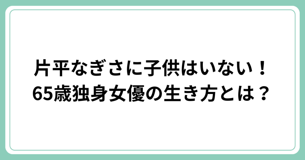 片平なぎさに子供はいない!65歳独身女優の生き方とは?
