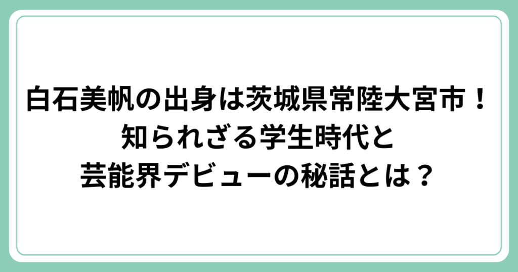白石美帆の出身は茨城県常陸大宮市!知られざる学生時代と芸能界デビューの秘話とは?