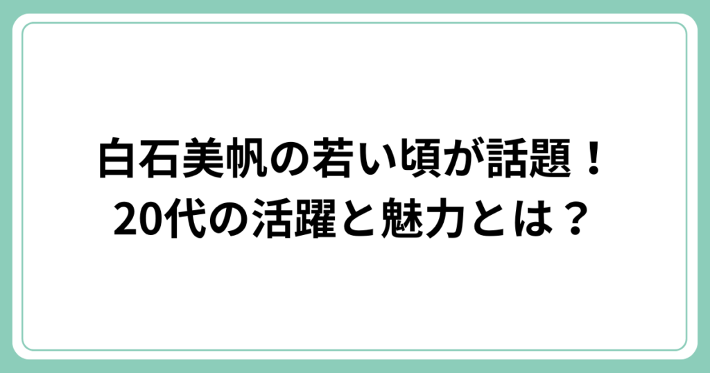 白石美帆の若い頃が話題!20代の活躍と魅力とは?