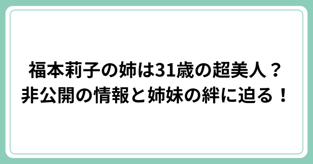 福本莉子の姉は31歳の超美人?非公開の情報と姉妹の絆に迫る!