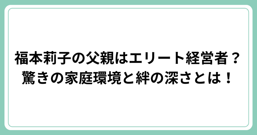 今、注目の若手女優として活躍中の福本莉子さん。 その輝かしい活躍の裏には、充実した家庭環境があるのではないかと噂されています。 特に、福本莉子さんの父親については「エリート経営者なのでは?」という声が上がっています。 今回は、福本莉子さんの... -
