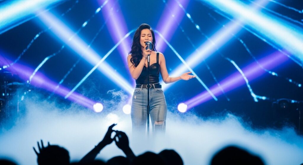 小柄な体格でも、その歌声とパフォーマンスで会場全体を圧倒する力を持っています。
