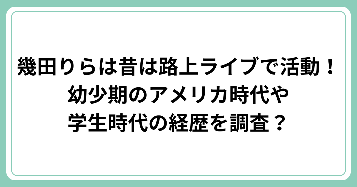 今回は、幾田りらさんの昔の活動について、幼少期から学生時代、そしてデビュー前の路上ライブ時代まで詳しく調査しました!
