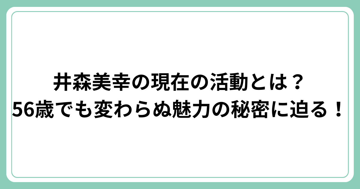 今回は、井森美幸さんの現在の活動状況や、年齢を感じさせない若々しさの秘密に迫ります。