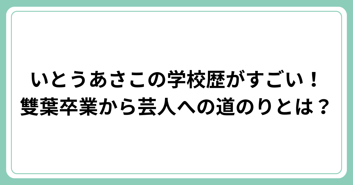 今回は、いとうあさこさんの意外な学校歴と、芸人への道のりについてご紹介します。