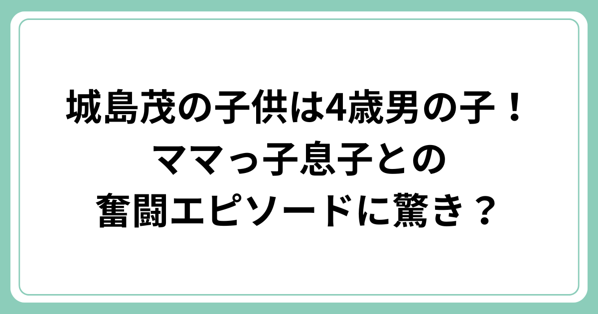 そんな城島茂さんの子育てについて、最新情報をお届けします。
