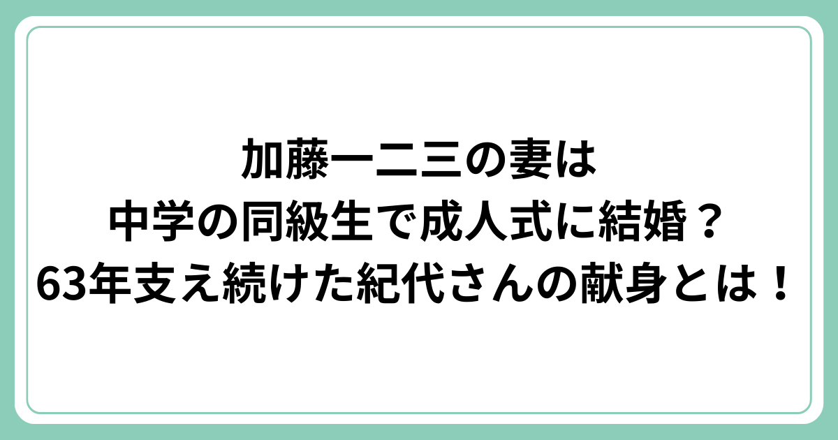 63年間という長い現役生活を、献身的にサポートし続けた紀代さんの存在は、加藤さんにとってかけがえのないものだったでしょう。