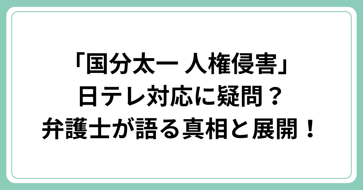 しかし、日本テレビの対応には多くの疑問が残されており、国分氏側は「人権侵害」があったと主張しています。