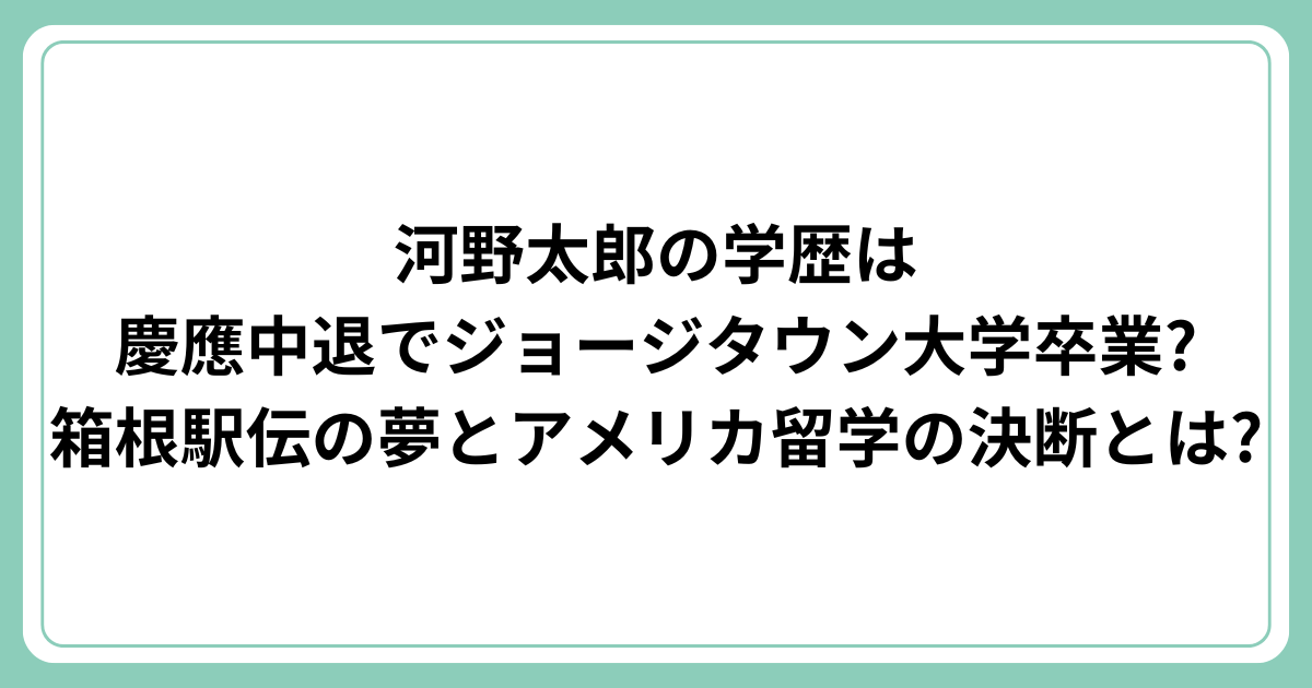 河野太郎氏が慶應義塾大学を中退した背景には、箱根駅伝への強い思いがありました。