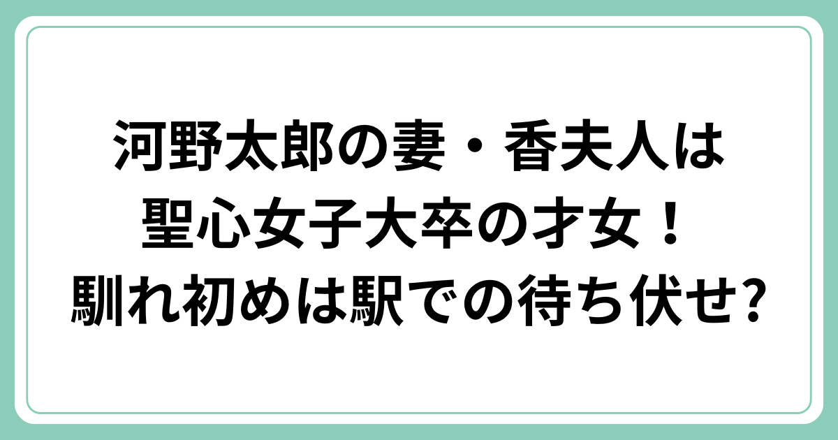 香夫人は聖心女子大学卒業後、外資系銀行で社長秘書を務めた才女であり、河野太郎氏とは一目惚れからの猛アプローチで結ばれたことがわかりました。