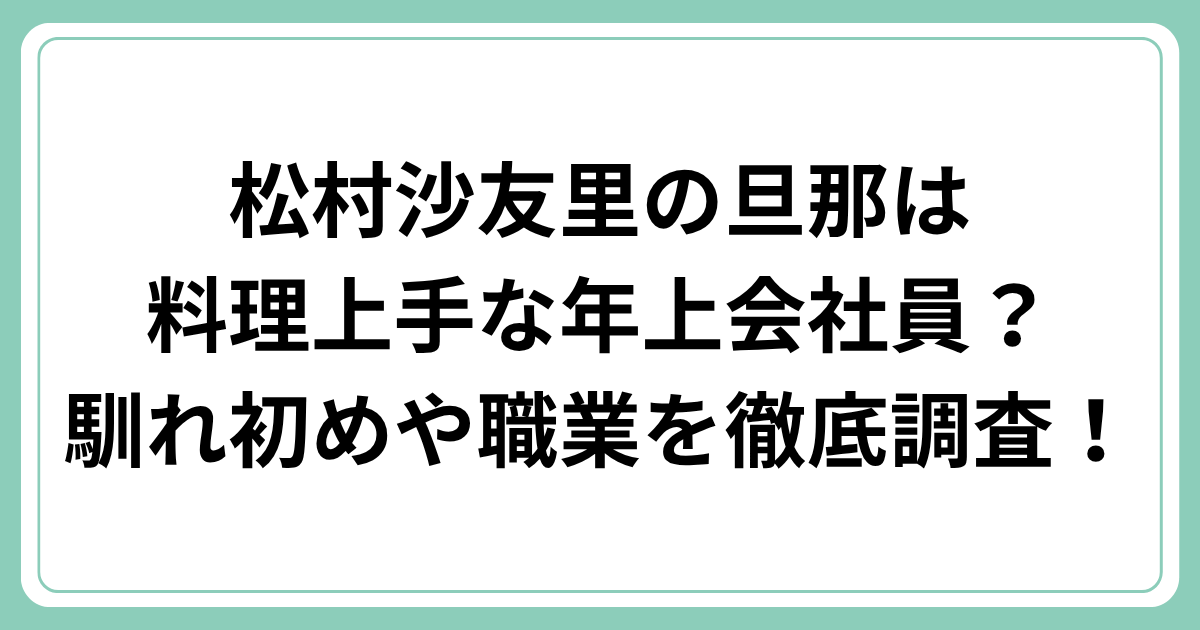 2025年12月3日に結婚を発表された松村さんの旦那さんは、都内の会社に勤める年上の一般男性で、料理上手で家庭的な方だということがわかりました。