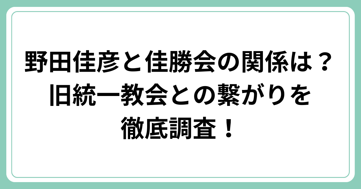 野田佳彦と佳勝会の関係は?旧統一教会との繋がりを徹底調査!