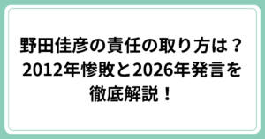 野田佳彦氏の説明と今後の影響は?