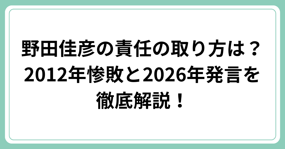 野田佳彦氏の責任の取り方について、2012年の衆議院選挙惨敗から2026年の最新発言まで見てきました。