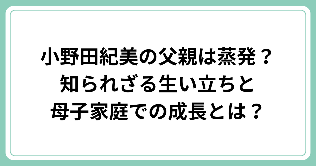 今回は、小野田紀美議員の父親にまつわる話や、知られざる生い立ち、そして母子家庭での成長について詳しく見ていきましょう。