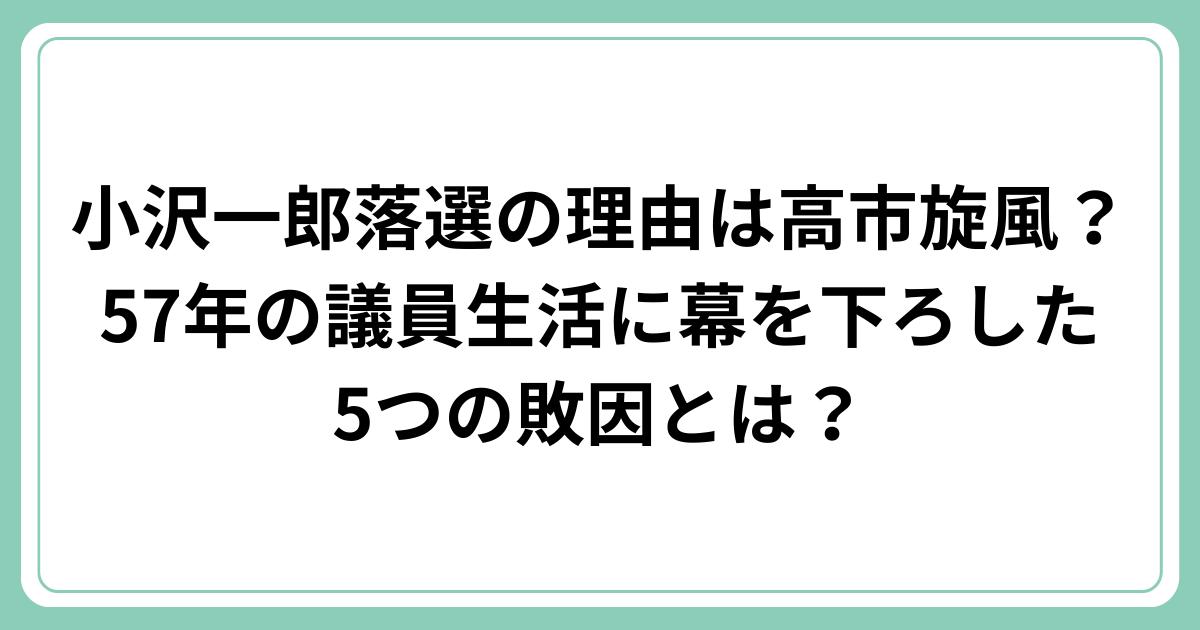小沢一郎氏の落選は、高市旋風、支持基盤の高齢化、短期決戦、世代交代、ネット戦略の遅れという5つの要因が重なった結果でした。