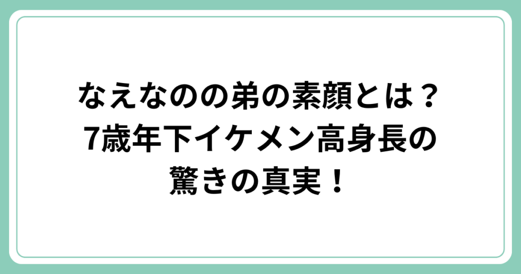 人気YouTuberやTikTokerとして知られる「なえなの」さん。 そんななえなのさんには、7歳年下の弟がいることをご存知でしょうか? 実は、なえなのさんと弟の関係性が注目を集めています。 今回は、なえなのさんの弟について、その素顔や兄妹の絆、さらには...