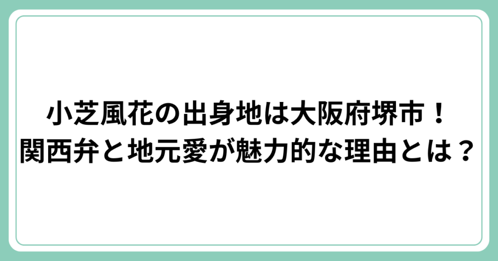 女優として活躍中の小芝風花さん。 その魅力的な笑顔と演技力で多くのファンを魅了している彼女の出身地をご存知ですか? 実は、小芝風花さんは大阪府堺市の出身なんです。 今回は、小芝風花さんの出身地である大阪府堺市について、そして彼女の関西弁や地... -