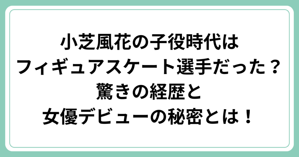 小芝風花の子役時代はフィギュアスケート選手だった?驚きの経歴と女優デビューの秘密とは!