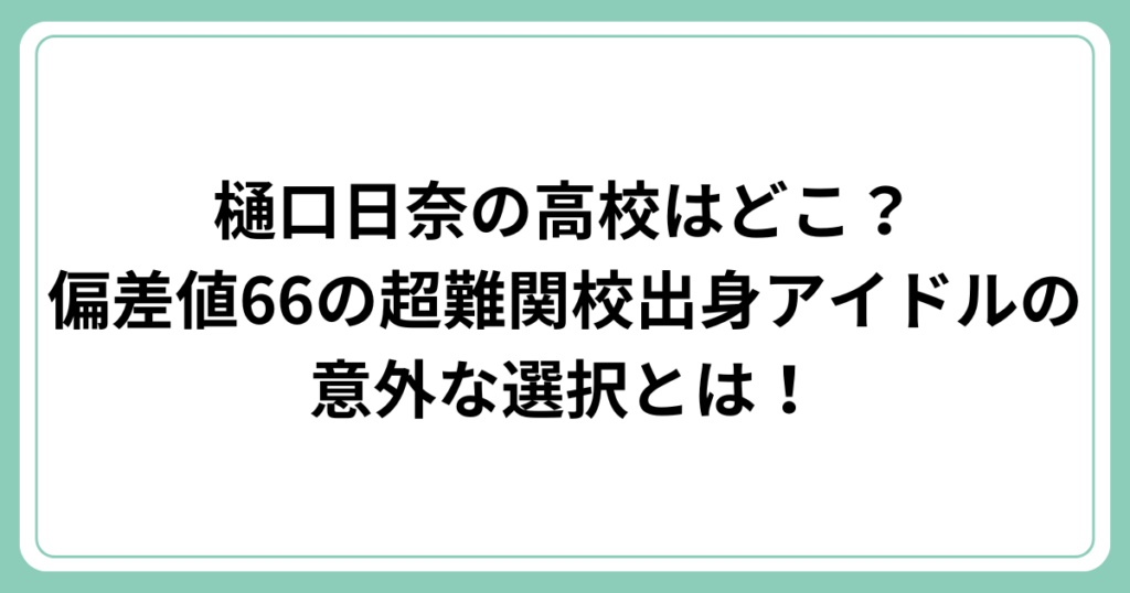 樋口日奈の高校はどこ?偏差値66の超難関校出身アイドルの意外な選択とは!