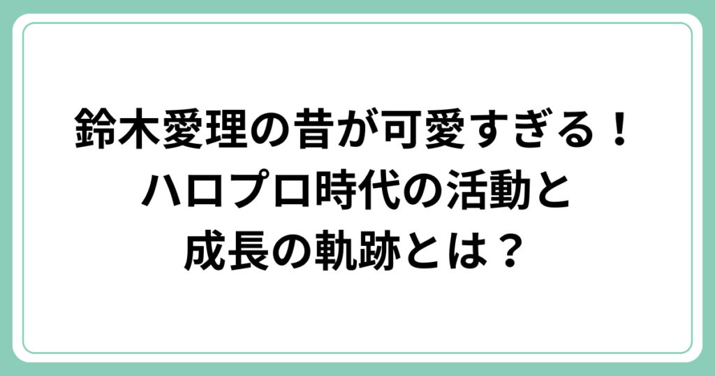 鈴木愛理さんといえば、現在ソロアーティストとして活躍する人気歌手ですが、実は長年ハロー!プロジェクト(ハロプロ)で活動していたことをご存知でしょうか? 今回は、鈴木愛理さんの昔の姿や活動、そして成長の軌跡について詳しくご紹介します。 懐か... -
