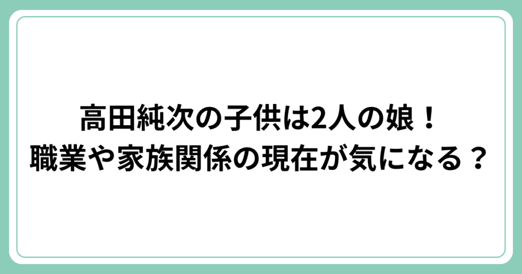 高田純次さんといえば、独特な雰囲気と「テキトー」なキャラクターで人気の俳優・タレントですね。 そんな高田純次さんにも家族がいるのをご存知でしょうか? 実は、高田純次さんには2人の娘がいるんです。 今回は、高田純次さんの子供たちについて、その... -