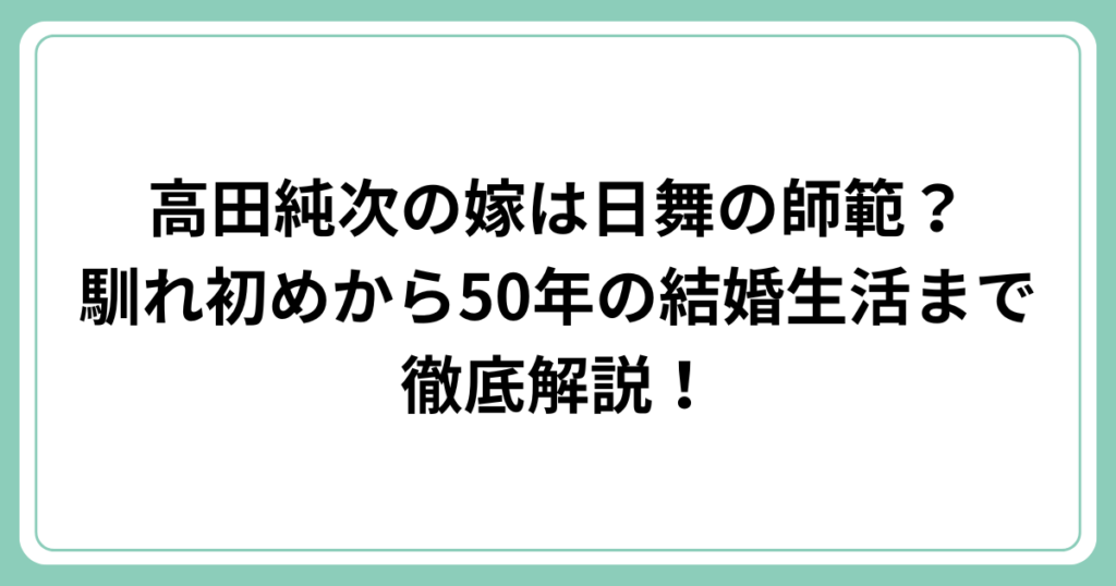 高田純次の嫁は日舞の師範?馴れ初めから50年の結婚生活まで徹底解説!