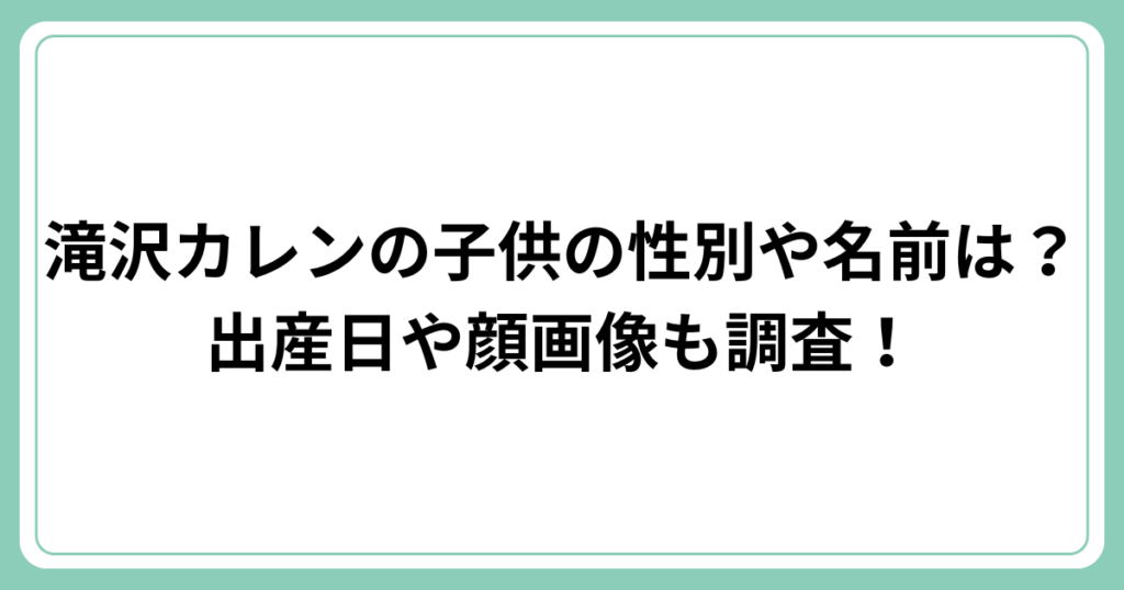 滝沢カレンの子供の性別や名前は?出産日や顔画像も調査!